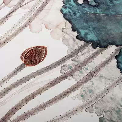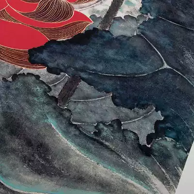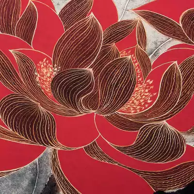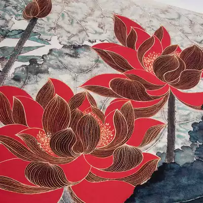 Chinese painting flowers and birds Zhang Daqian gold line lotus picture original copy high-definition vertical axis painting core decoration copy unmounted