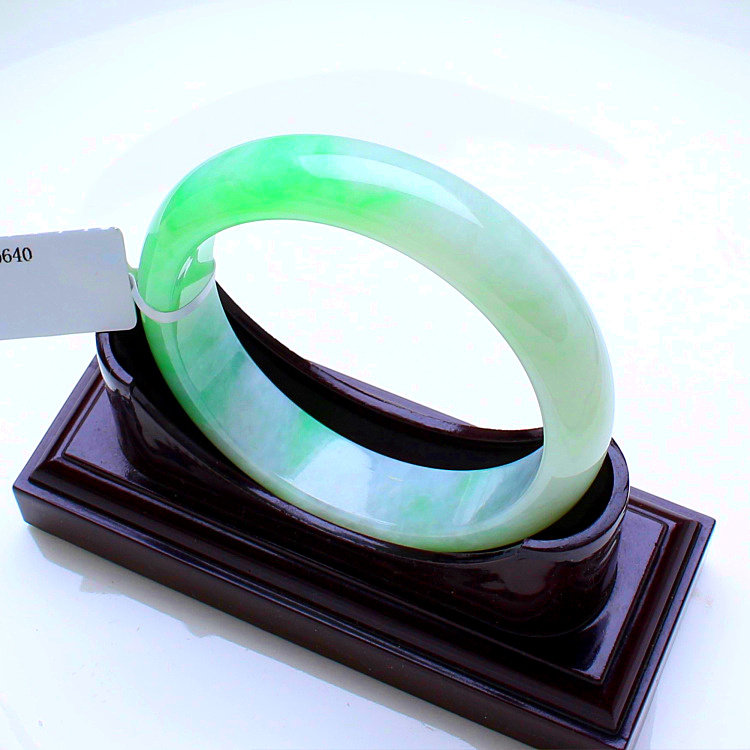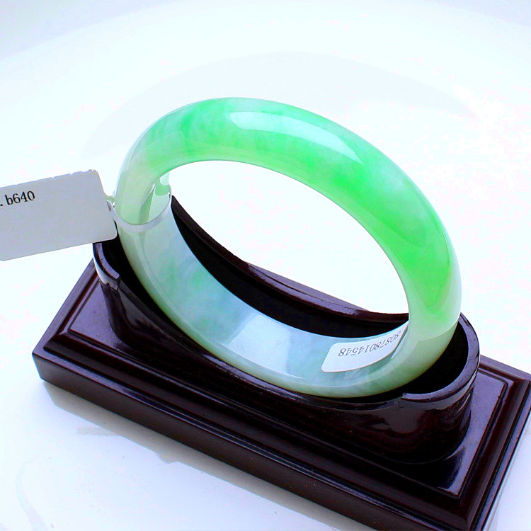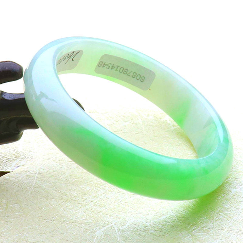 Natural old pit A goods jade bracelet with white background Qingpiaoyang green jade bracelet Myanmar jade bracelet with certificate 54MM