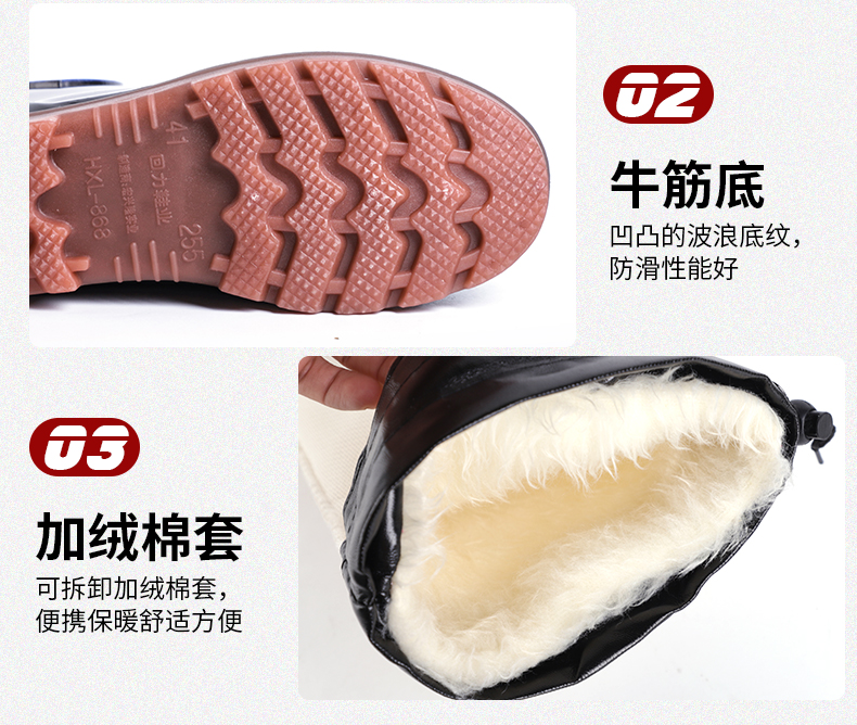 Huili rain boots warm rain boots in autumn and winter middle tube high tube men's non-slip new water boots overshoes plus velvet water shoes