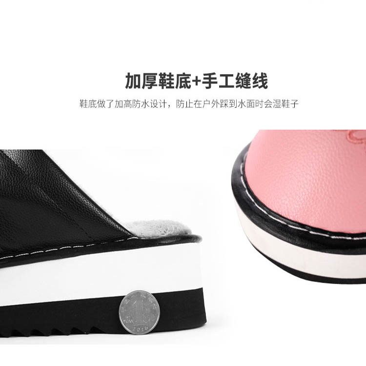 High heel leather cotton slippers female thick bottom winter warm PU waterproof anti-slip foam bottom cotton shoes Indoor outpuff pastry heel