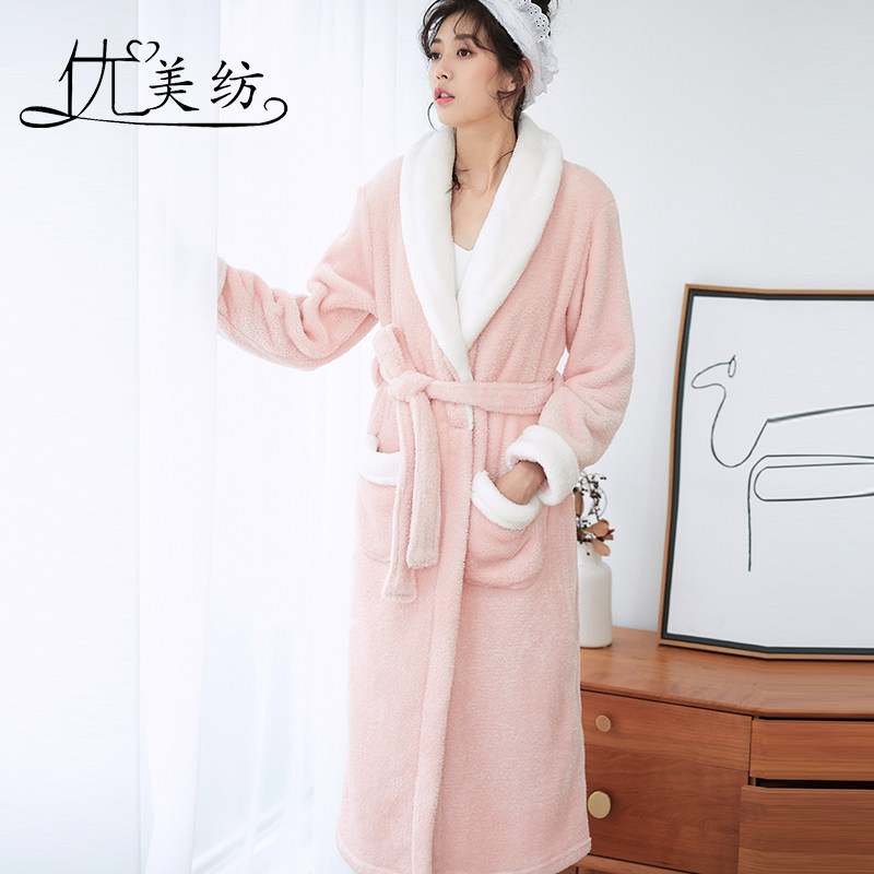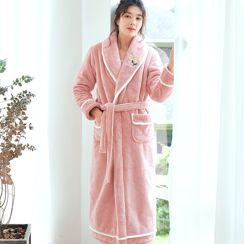 Nightgown women's winter cute long version of coral velvet autumn explosion style night dress thickened autumn and winter bathrobe large size sexy new pajamas