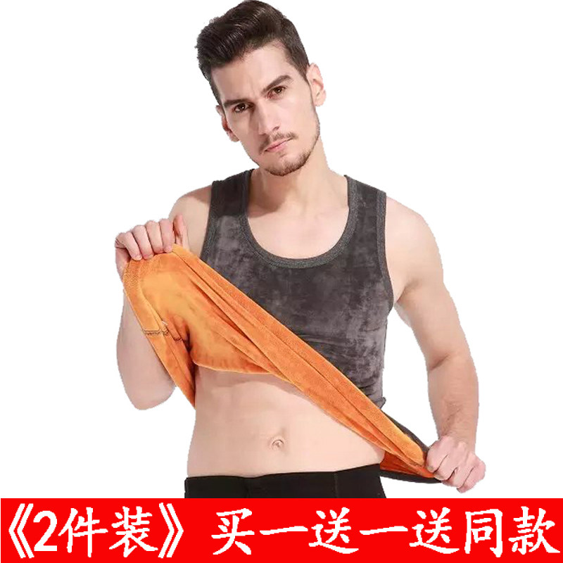 Two-piece men's double sided plus suede thickened warm vest autumn winter workout type gold A youth underwear