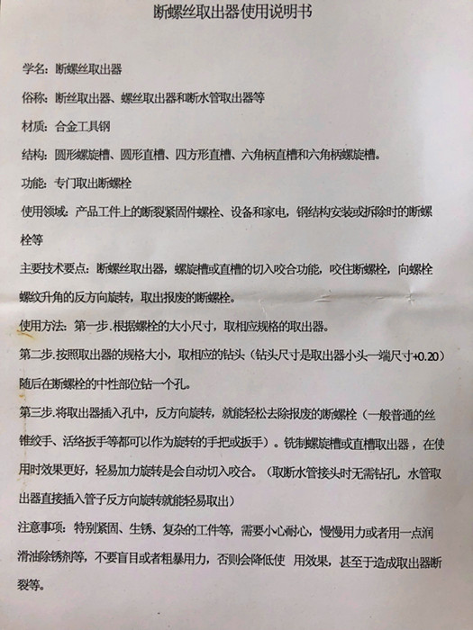 Broken head screw extractor tap triangular valve broken head water pipe extractor manual screw slip wire dismantling machine