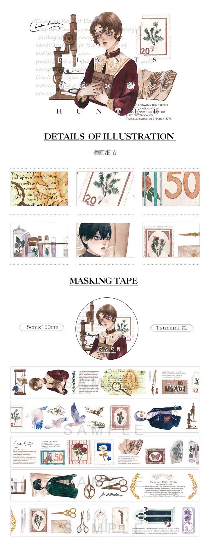 KAZE Plant Hunter Super Long Oil Off Paper and Tape Cycle Separation of Handbook Stickers