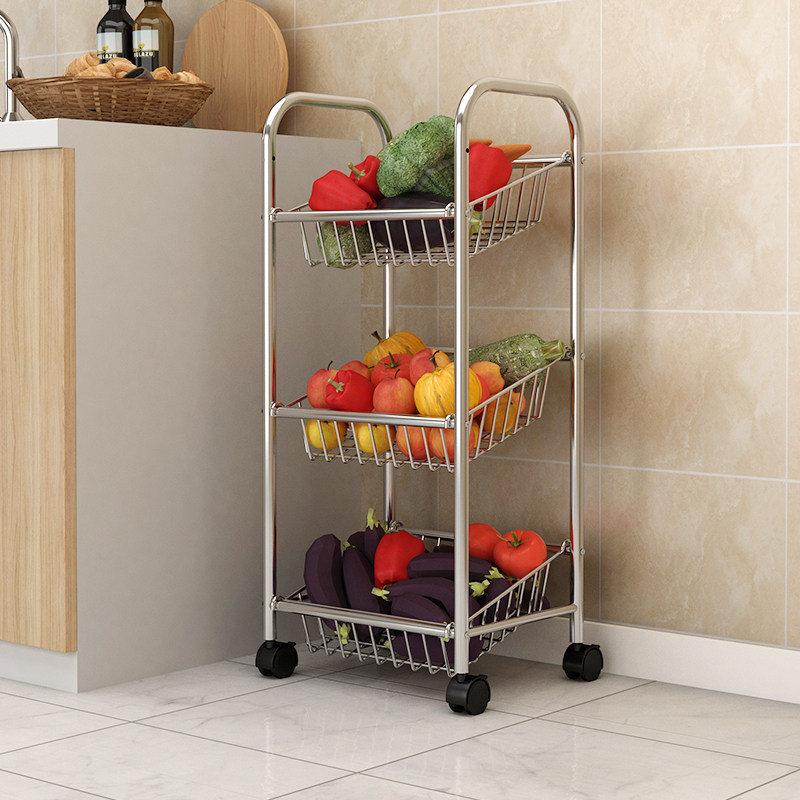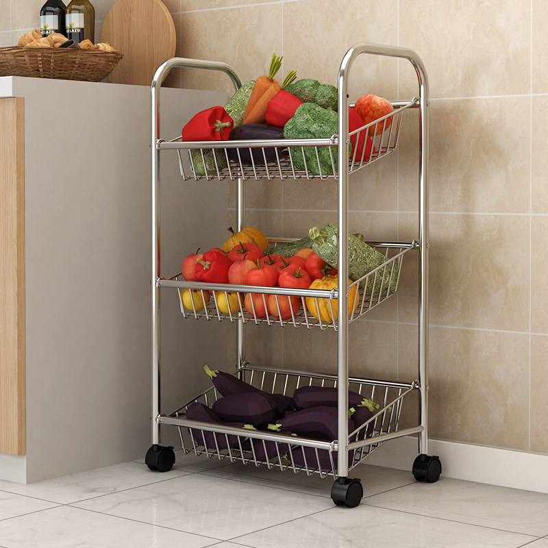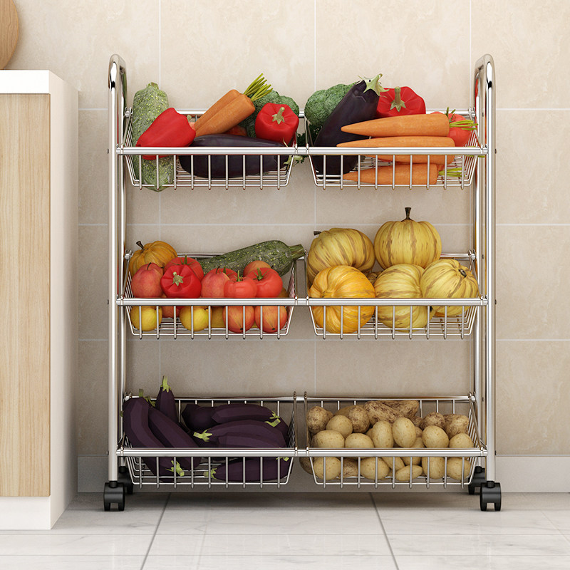 304 stainless steel kitchen shelf Floor-standing vegetable rack Fruit mobile storage rack Multi-layer pot rack