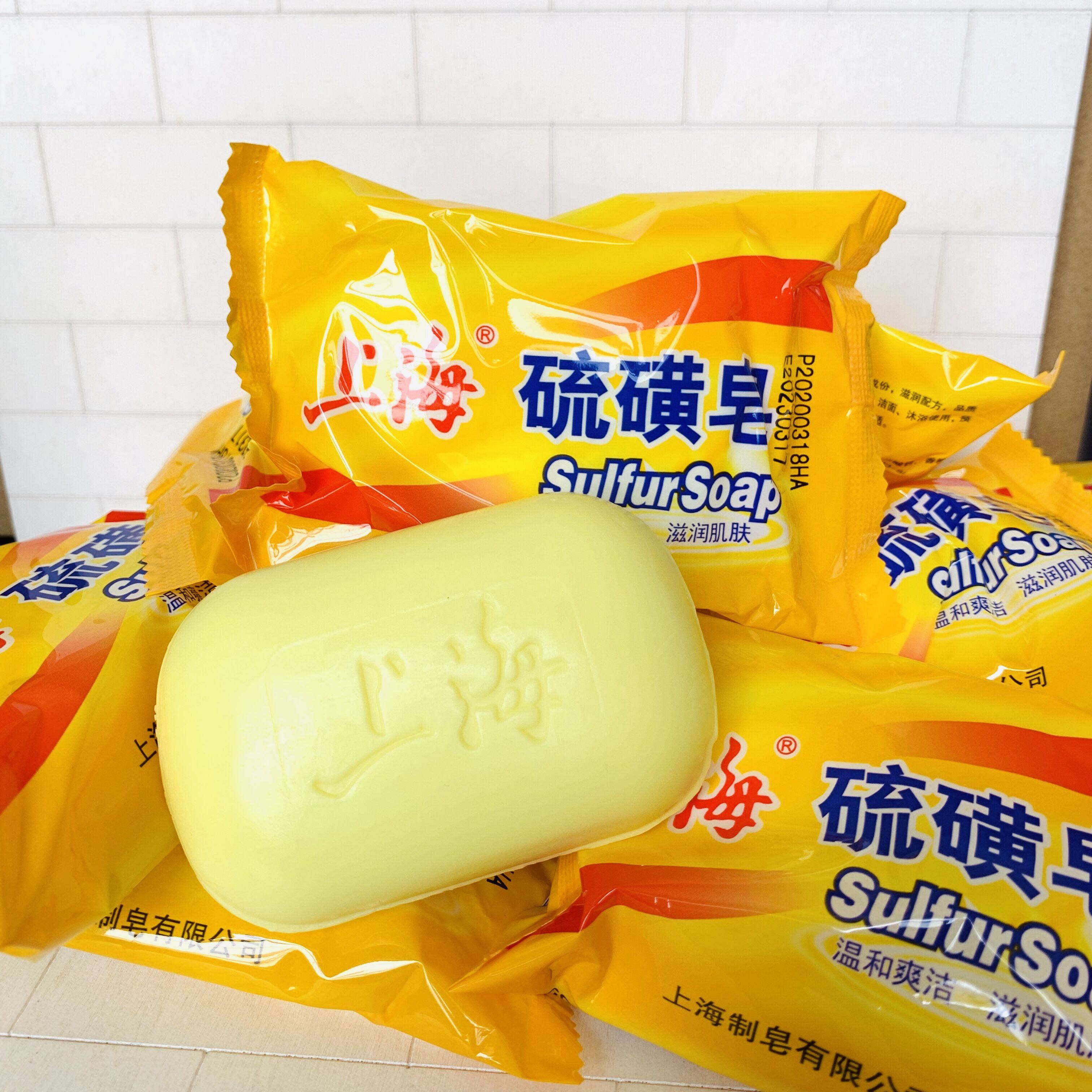 Shanghai Sulphur Soap 85 gr * 5 pieces Handwashing Soap Soap soap 85g Face Soap Except Mites Control Oil Bacteriostatic Sulphur Yellow Soap