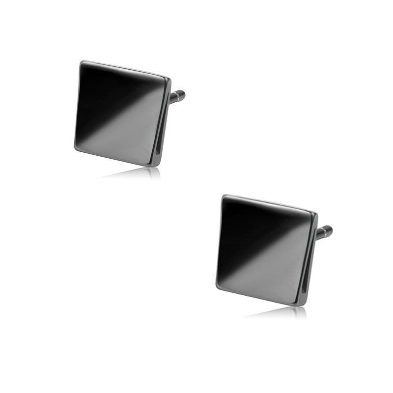 Sterling Silver Stud Earrings Black Geometric Square(Pair)