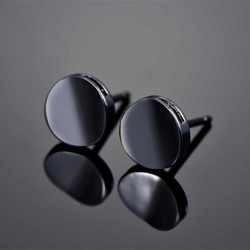 Sterling Silver Stud Earrings Black Geometric Round(single)