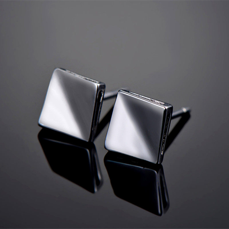 Sterling Silver Stud Earrings Black Geometric Square(single)