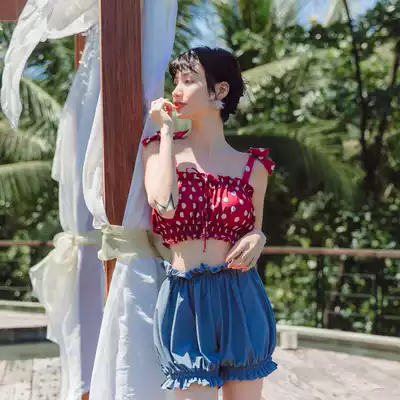 Japanese students cute girl sexy bra-chest bloomers three-piece conservative slim point two-piece swimsuit women