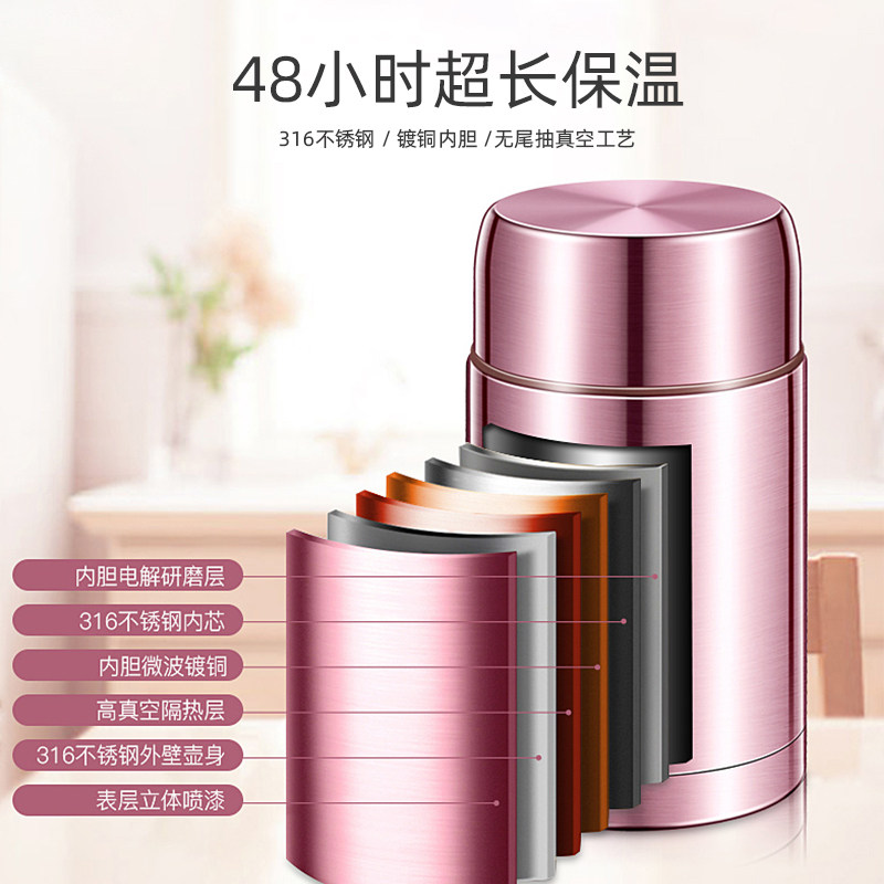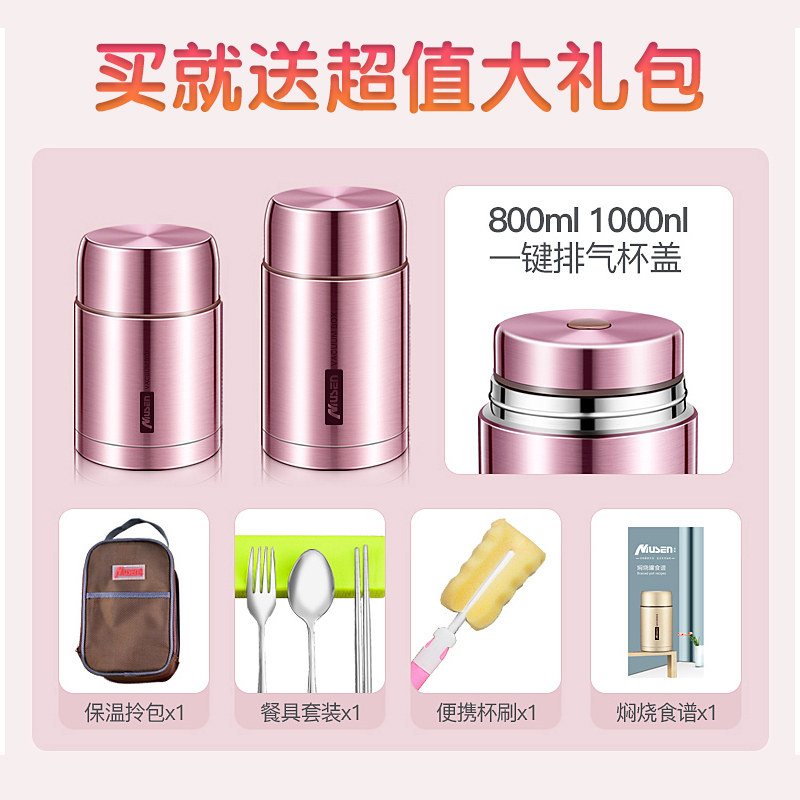 (316 stainless steel vacuum insulation)Rose gold 800ml Gift insulation bag Tableware set (316 stainless steel vacuum insulation)Red 800ml Gift insulation bag