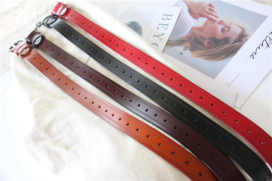 Cool 5050-Full stiletto Perforated Bull Leather Genuine Leather Genuine Leather minimalist About retro lady Belt Belt Casual