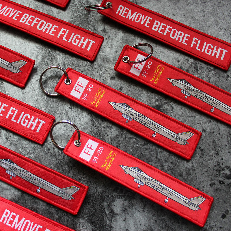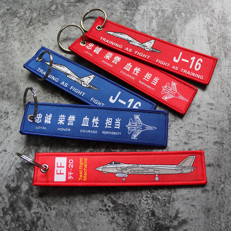 Pre-flight demolition J20 embroidered key button textured webbing webbing webbing key phone hanging strip flying jacket floating strip