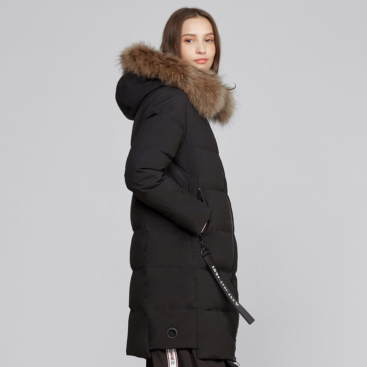 Snow fly 2021 new big hair collar down jacket women's long version hooded fashion thickened warm jacket tide