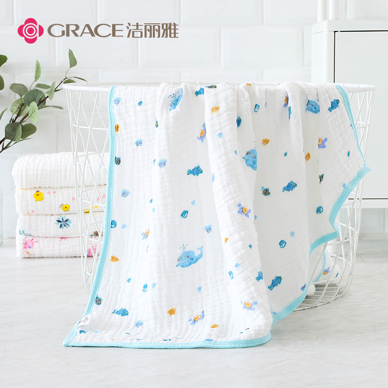 Jie Liya cotton gauze baby bath towel Newborn baby bath soft towel Children blanket hug quilt