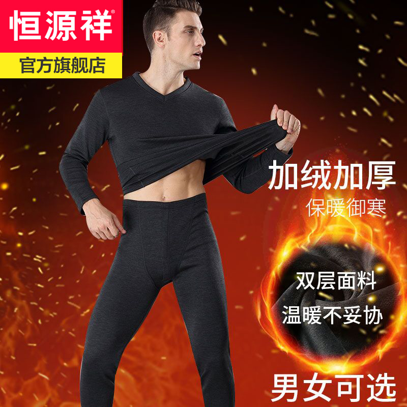 Constant Source Xiang Fever Coat Thickening Plus Suede Winter Double Layer Anti-Chill Coat Pure Color Autumn Clothes Sanitary Pants Men And Women Couples Suit