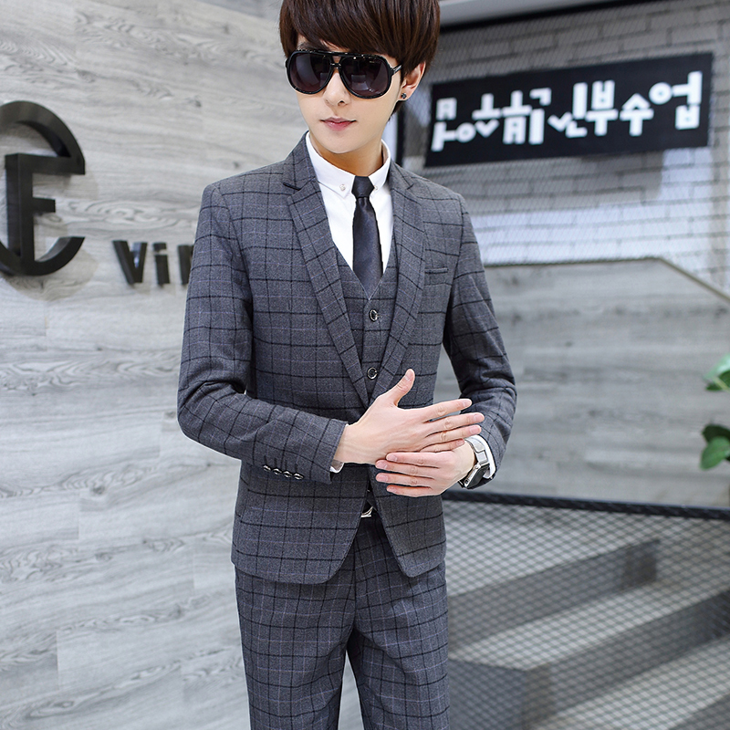 Western suit suit men's three sets of groom costumes wedding gowns The men's suit suit for a Han version is in the fall