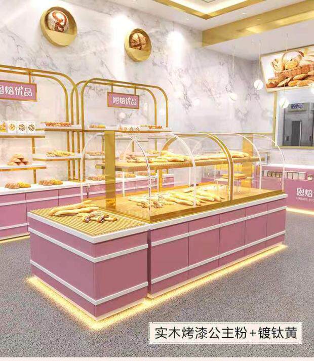 Bread titanium-plated display cabinet titanium-plated white island cabinet peach pastry display cabinet curved display cabinet bakery shop