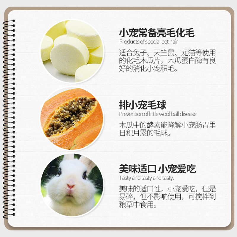 Papaya pills Rabbit hamster Chinchilla Hamster Dutch pig snack Rabbit rabbit hair removal ball supplies about 80 tablets