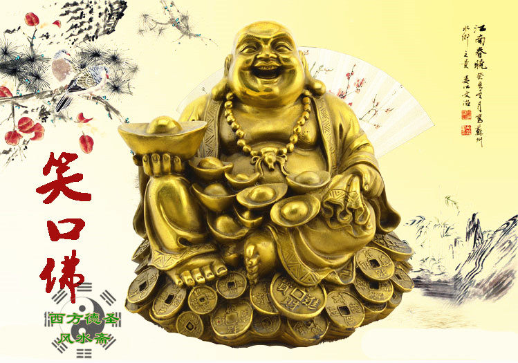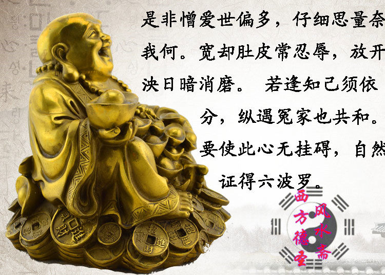 Bronze Millver Laughs Buddha's big belly Buddha bronze statue with a swing piece to send a fortune and send a fortune to the home of the family temple