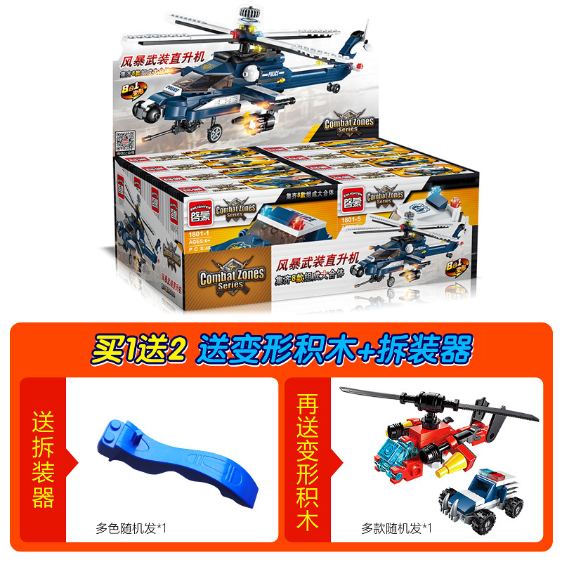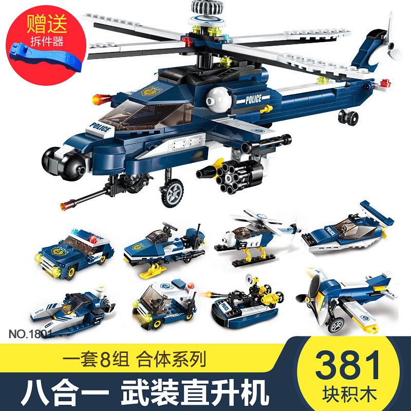 Enlightenment LEGO bricks assembly toys Puzzle 8 boys 10 puzzle 6-12 years old armed police plane helicopter