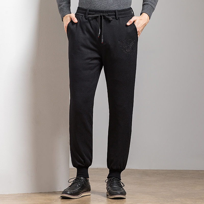 Yose Middle Aged Men Sports Down Pants Heft Winters Thickened Closing Black Large Size Loose Straight Barrel Long Pants