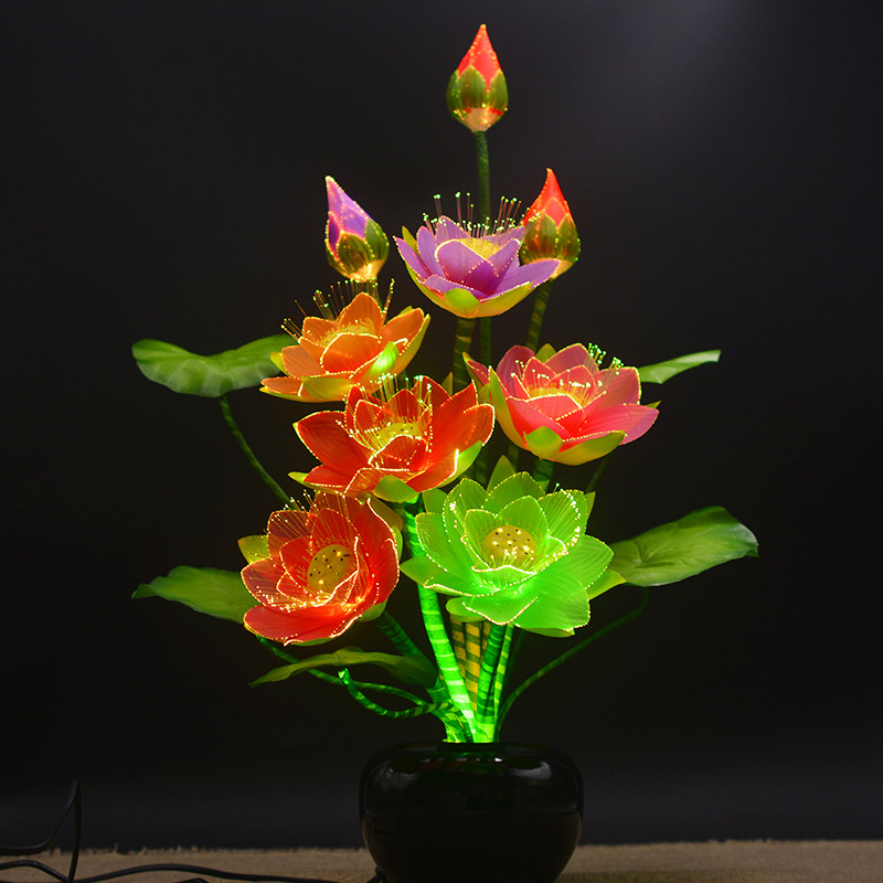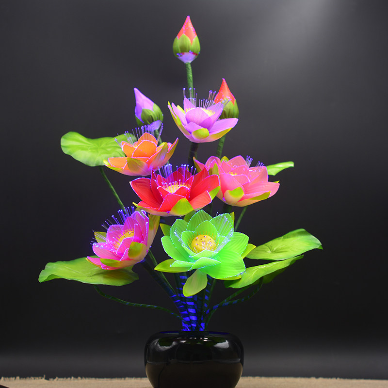 Furnishing flower decoration lamp bonsai flower 7-color fiber emulation lotus lamp Nine Lotus Lamp Potted Flowers for flower hawkishings
