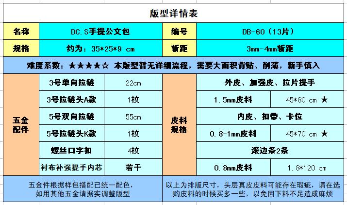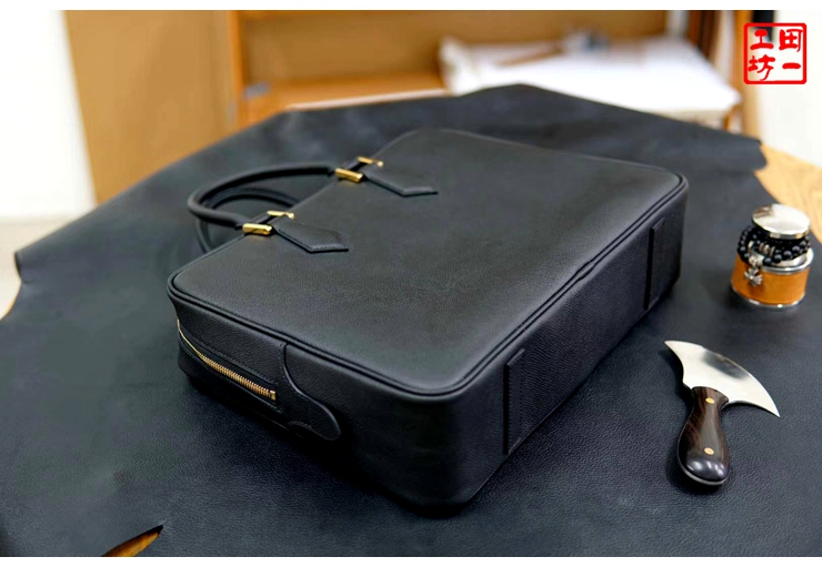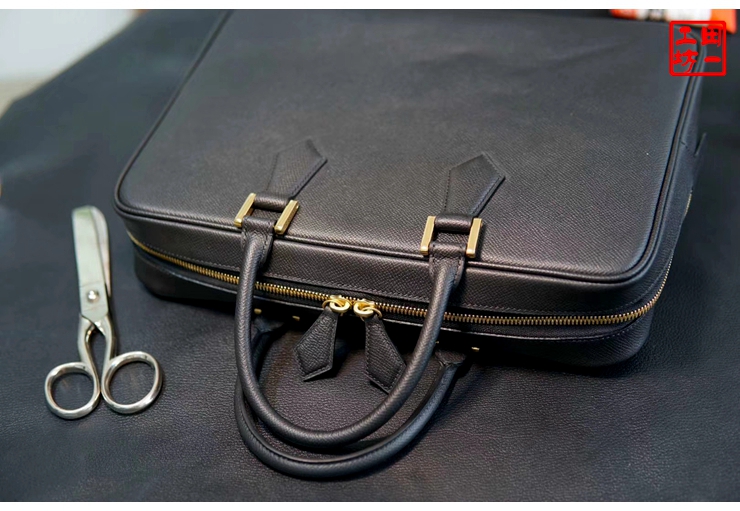 Portable briefcase DB-60 with cut hole laser cut version of the no-cut handmade leather drawing DC.S design