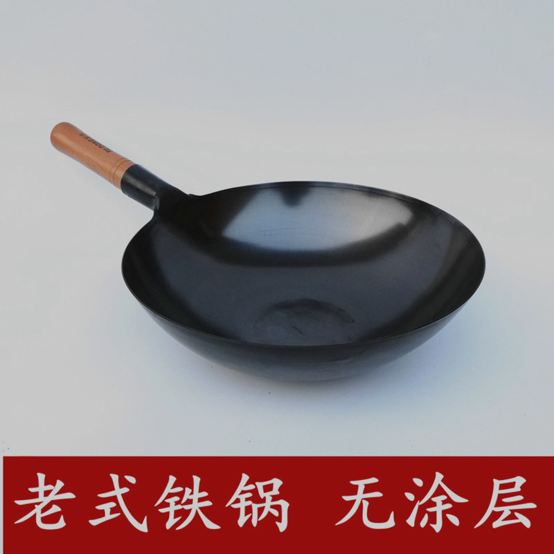 Old-fashioned iron pot uncoated wok Gas stove suitable for household wok round bottom large iron pot