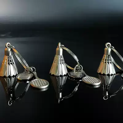 Metal keychain badminton racket pendant school bag sports bag decorations