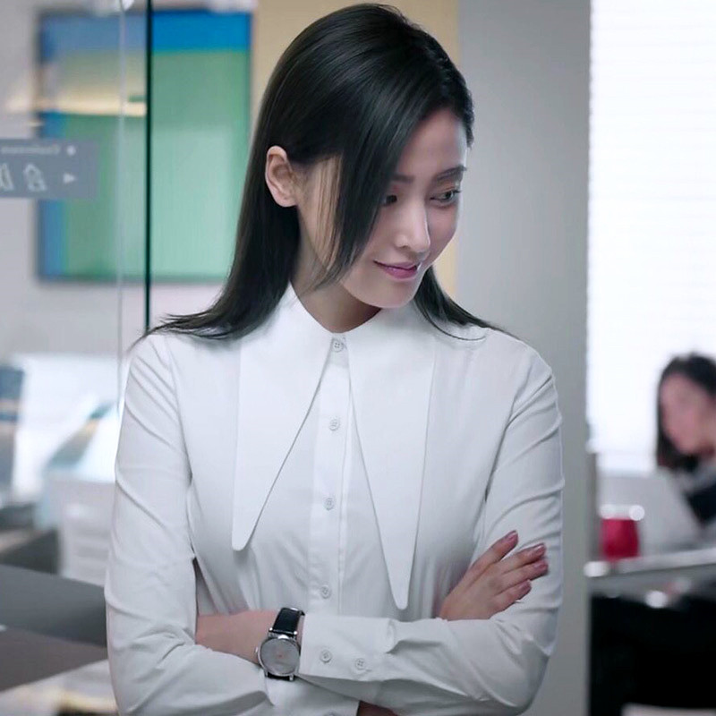 Zhang Heaven Love the same large pointed collar shirt female design sensation Little crowdsourced white shirt 2022 Early spring new blouses