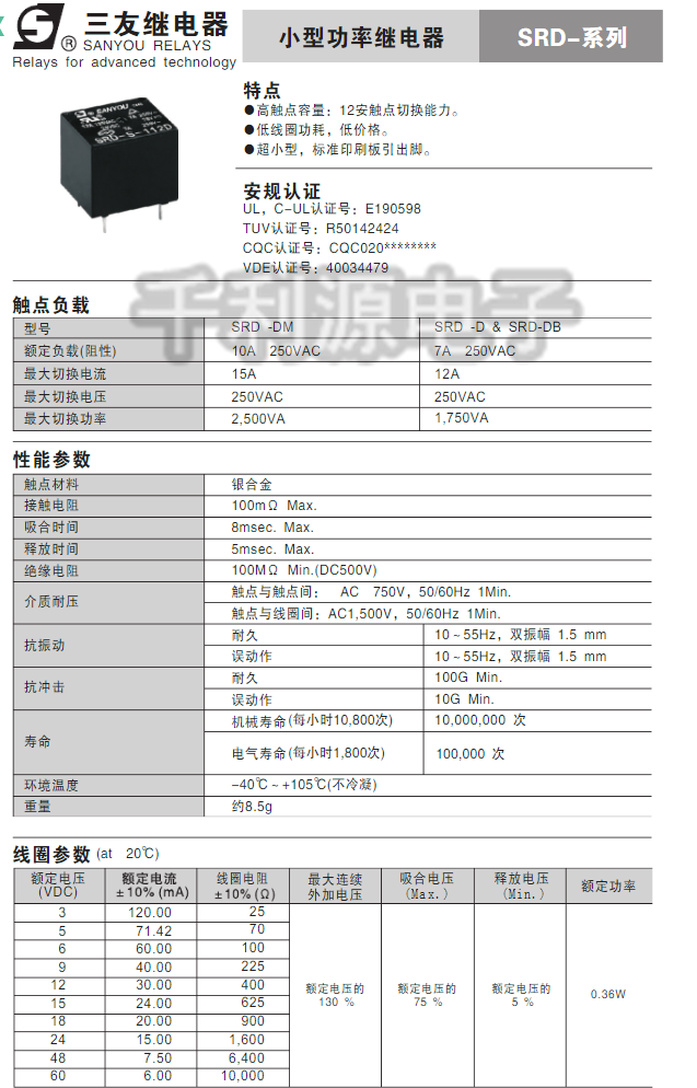 SRD-S-112DM Sanyou relay 4 pins a group of normally open 10A can replace JQC-3FF-12VDC-1HS