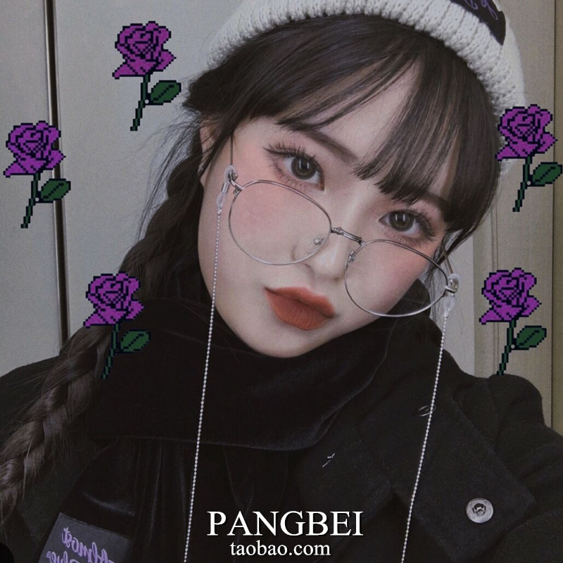 South Korea's new retro cute academy wind metal 100 hitch anti-blue light eye frames vegan glasses men and women