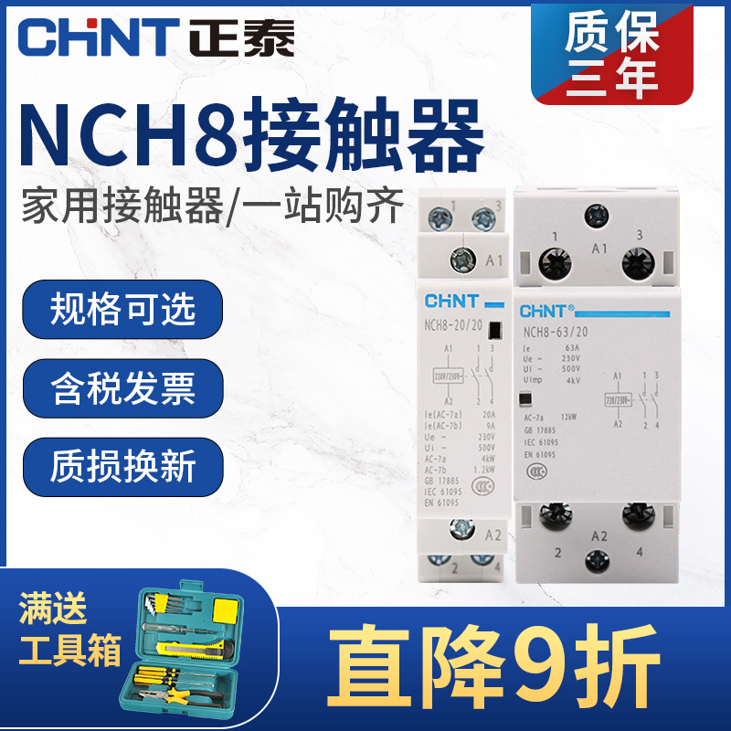 Chint household small AC contactor NCH8 single phase 220V rail type 2P 4P 40A63a Normally closed Normally open