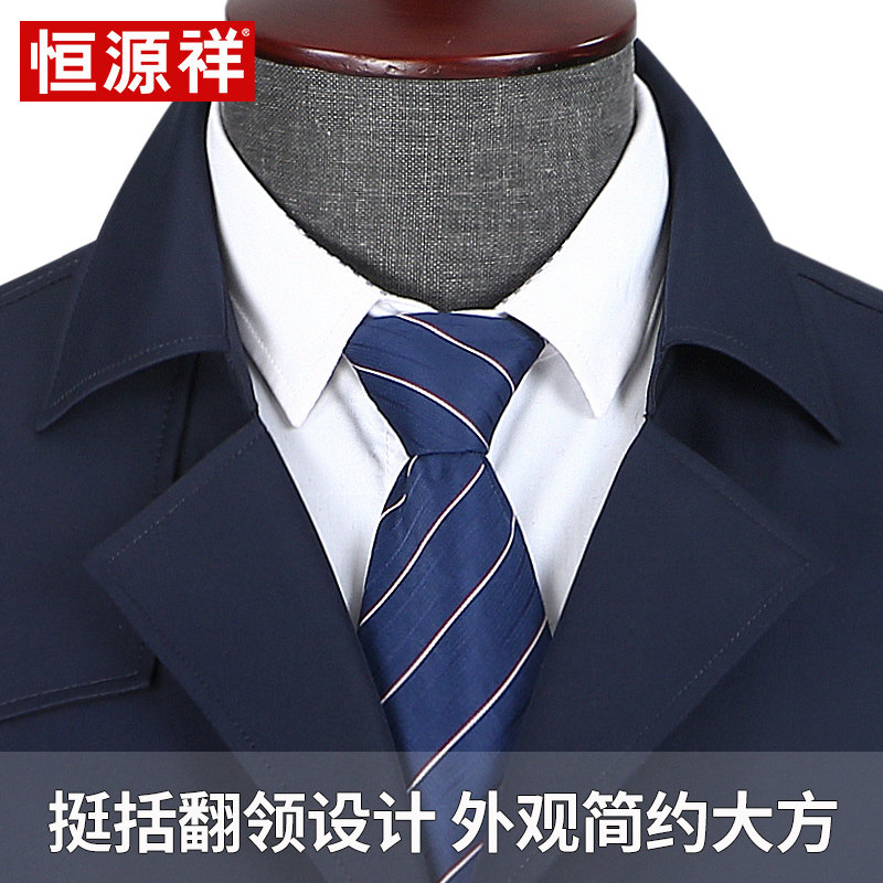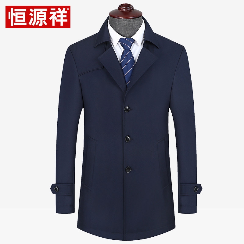Hengyuanxiang jacket men's mid-length lapel middle-aged business dad wear autumn and winter new solid color jacket windbreaker men