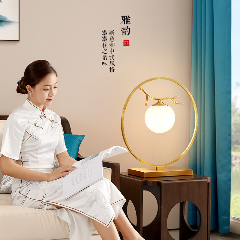 Moon shadow lighting new Chinese table lamp bedroom creative bedside lamp modern simple all copper classical Zen living room lamps