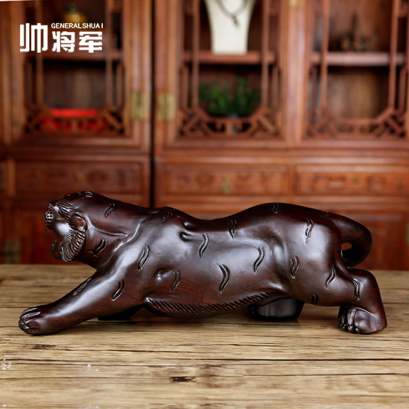 Ebony wood carving Tiger ornaments twelve Zodiac solid wood tiger home feng shui gift mahogany carving crafts