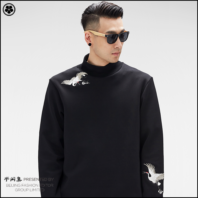 Semi-leisure concentrated national style embroidered sweater Spring Crane Hip-hop street fashion trend brand dance jacket High collar long sleeve men's clothing