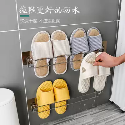 Punch-free powder room toilet household slipper rack Stainless steel storage hook Bathroom slipper rack wall-mounted
