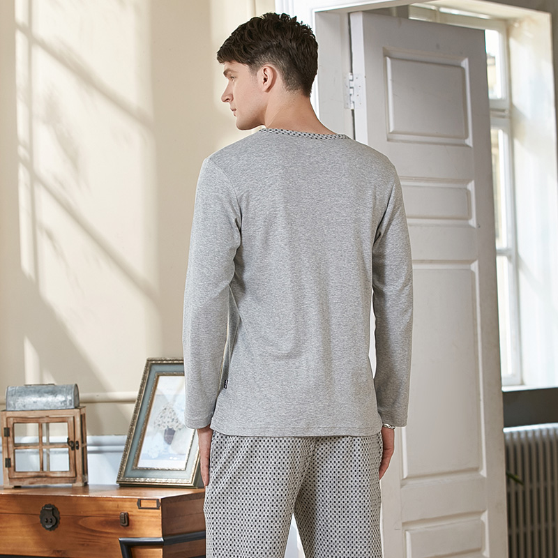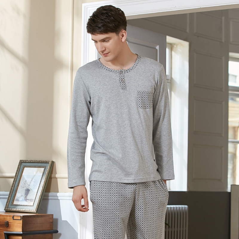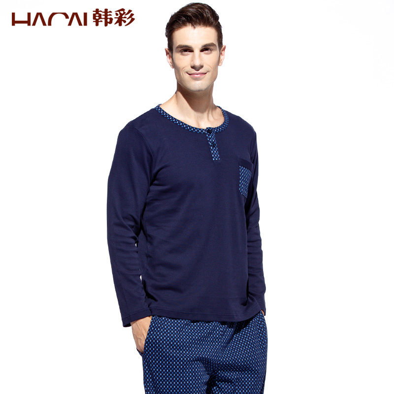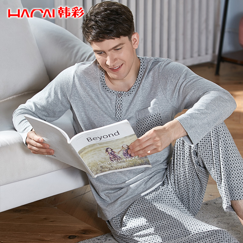 Han Cai autumn and winter men's pajamas Long-sleeved cotton can be worn outside the pullover leisure youth cotton home clothing set