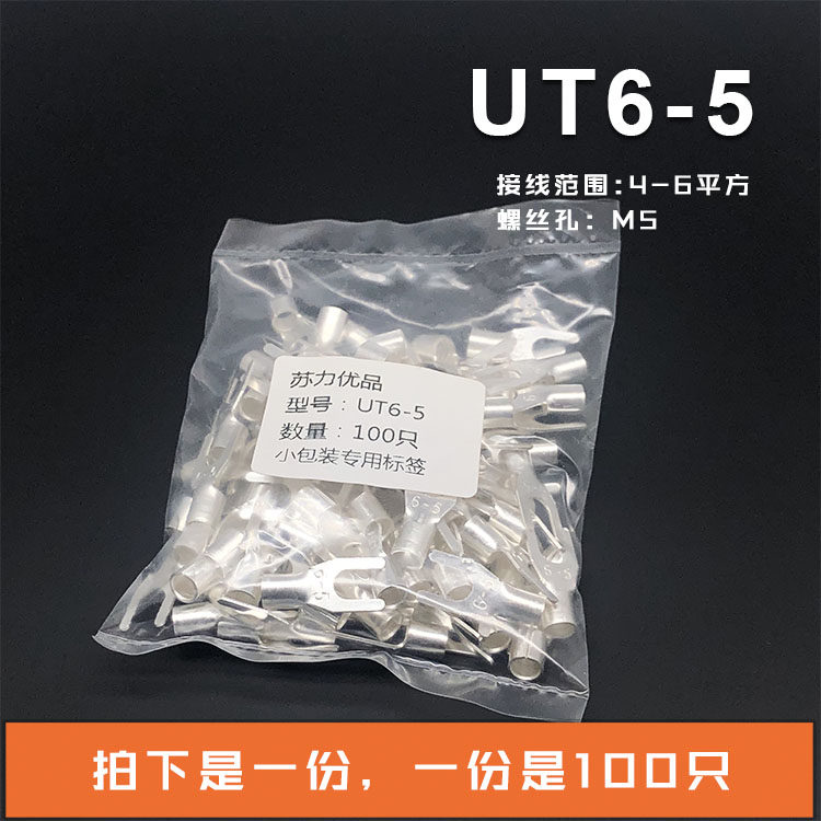 UT6-5 cold-pressed terminal U-shaped Y-shaped fork-shaped bare end copper wire nose silver-plated wiring ear 100 only