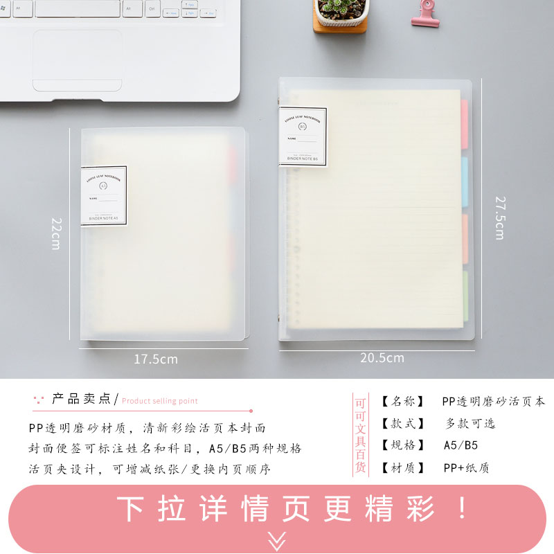 Frosted transparent loose sheets This detachable small and clear new notebooks This A5B5 Handbooks This loose-leaf notebook subtext