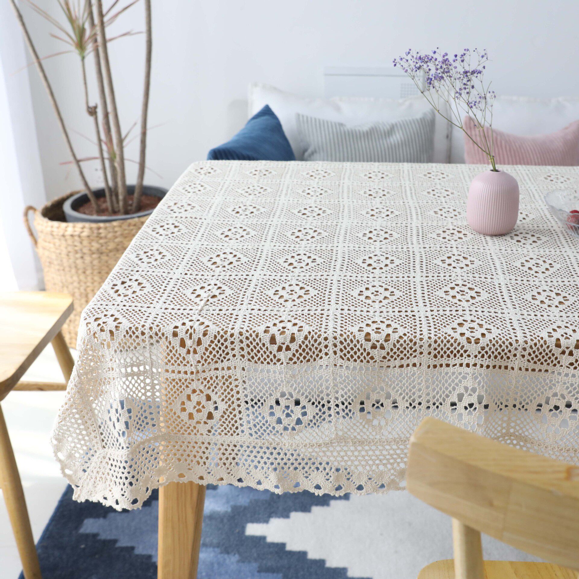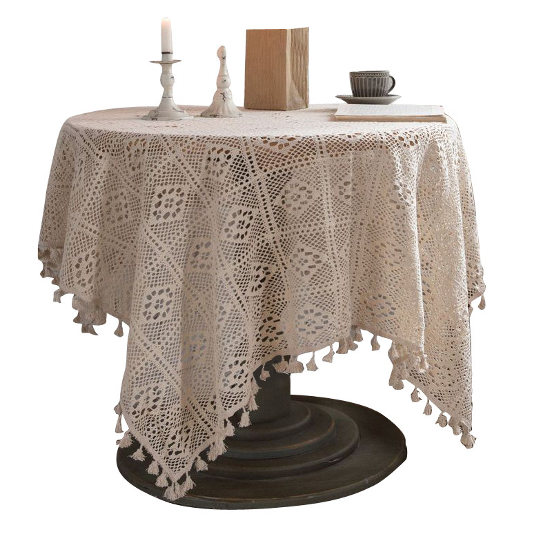 Retro American Fields Garden Hand Crochet Table Cloth Hollowed-out Flow Su Artistic Table Bum Beige Lace Tea Table Cloth Photographic Cloth