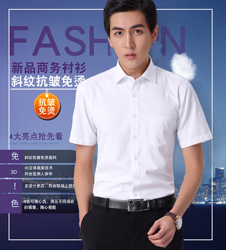 Men's Short Sleeve White Shirt Slim Cotton Free Ironing Summer Business Dress Workwear Professional Work Large Size Shirt