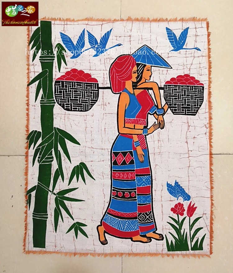 New heavy color silk screen painting ethnic village decoration tourism memorial home decoration burden 85*65CM