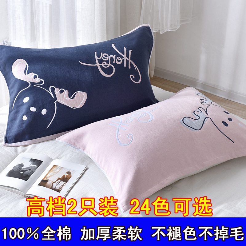 100% cotton pillow towel a pair of pure cotton, widening and thickening couple high-grade European gauze breathable anti-mite antibacterial single