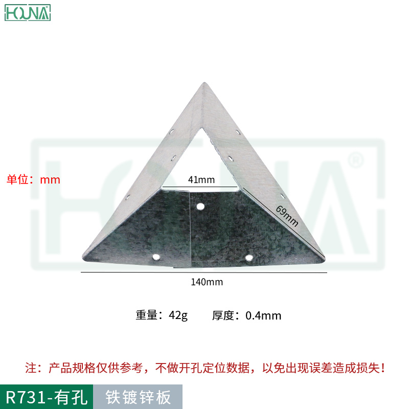 HOUNA PACKING BOX Sheet Iron Bag Corner of the box Corner Care Corner Manufacturer Direct Triangle Protection Corner R731 With Hole Galvanized Sheet