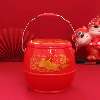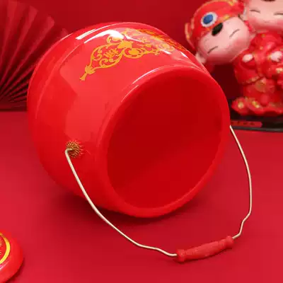 Wedding children's bucket Wedding celebration supplies imitation red solid wood single pony bucket Women's dowry makeup children's bucket three pieces