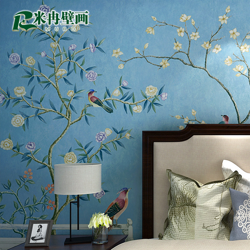 American mural seamless whole house flowers and birds custom TV background wall Entrance bedroom study aisle decorative wall painting