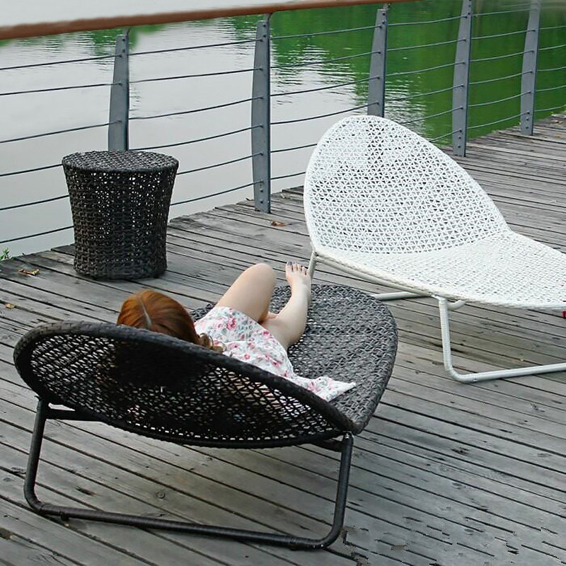 Outdoor bed Swimming pool balcony Sun room Garden courtyard Sun lounger Terrace Beach Rattan simple leisure bed